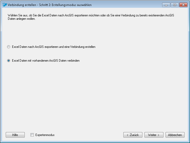 2. Im zweiten Schritt wählen Sie die Einstellung "Excel Daten mit vorhandenen ArcGIS Daten verbinden"